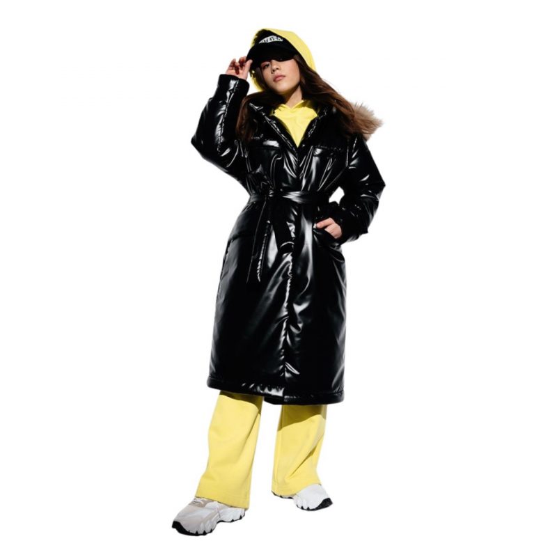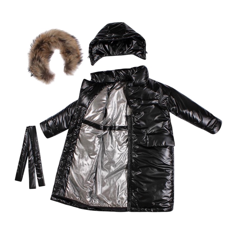 Пальто зимнее для девочки с капюшоном GNK. Устойчиво к загрязнениям и влаге, которые можно удалять влажной тканью. Подкладка из современного фольгированного материала (омни хит). Капюшон съемный с мехом енота. Рукав втачной. Воротник с цельнокроеной стойкой и лацканами, застегивающимися на съемный пат на кнопках. Застежка центральная на молнию и потайные кнопки. Прорезные нагрудные карманы, нижние с клапаном. По низу выполнена кулиса, регулируемая тесьмой.