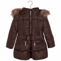 Куртка для девочки, декорированная искусственным мехом Mayoral. Капюшон отстегивается. Подкладка лифа из мягкого велюра. Застегивается на замок-молнию. Эластичный поясок с «золотой» пряжкой.
