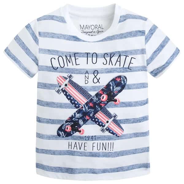 Футболка в полоску для мальчика из хлопка с принтом от Mayoral.